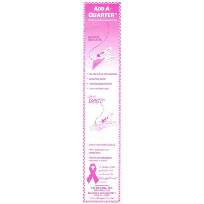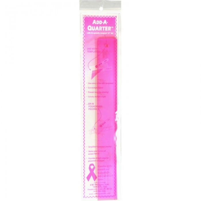 The Add-A-Quarter Ruler, with its specially designed lip, which automatically adds the 1/4" seam allowance to any angle and provides a straight edge for your rotary cutter. It makes paper piecing a snap.