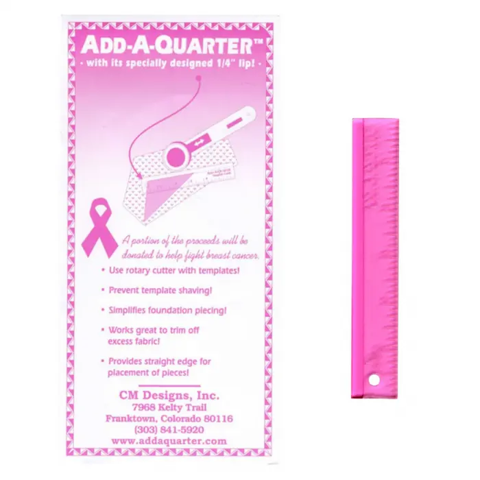 The Add-A-Quarter Ruler with its specially designed lip, which automatically adds the 1/4" seam allowance to any angle and provides a straight edge for your rotary cutter. It makes paper piecing a snap.