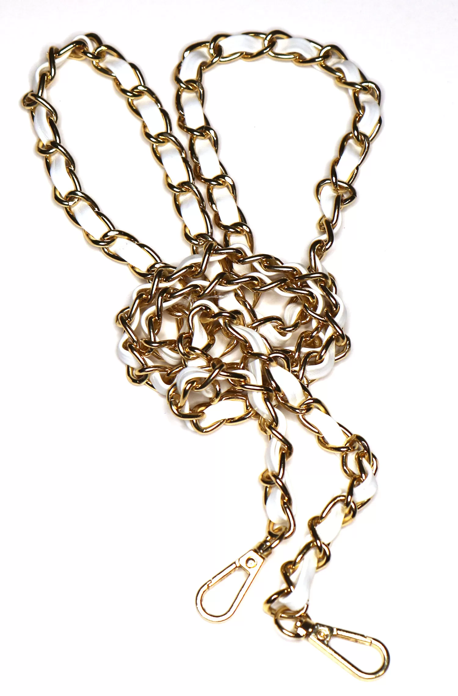 Gold Chain Leather Insert 110cm White