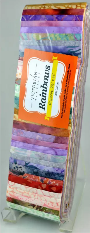 A Rainbow is a 2 1/2" Precut Fabric Strip set, 40 strips of 100% cotton Fabric