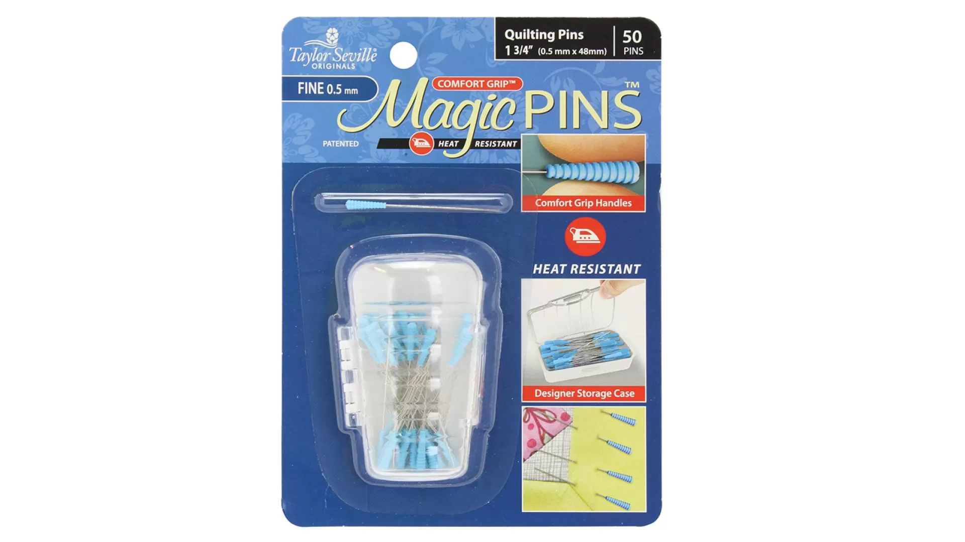 Magic Patchwork Pins™ are great for a wide variety of projects. These smooth, sharp, professional-quality pins are 1 7/16" long. Featuring our Comfort Grip™ handles, they're perfect for your patchwork projects and much more! Includes attractive designer storage case.