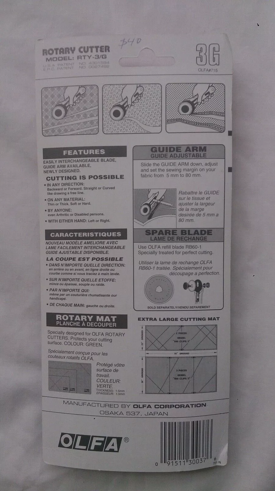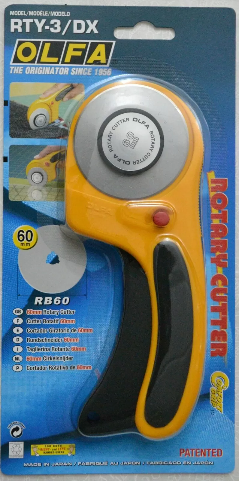 - The 60mm deluxe rotary cutter features a unique ergonomic handle which reduces pressure on your hand and wrist, making it possible to work for longer periods of time without strain.