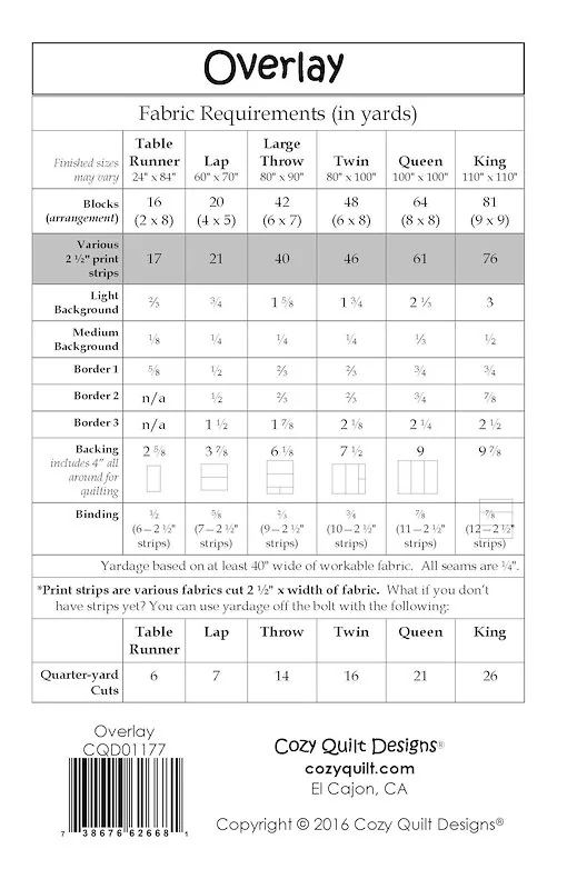 Strong contrast between the strips and background fabric makes it appear as if these blocks are laying on top of one another! A fun pattern to make in a variety of sizes!
