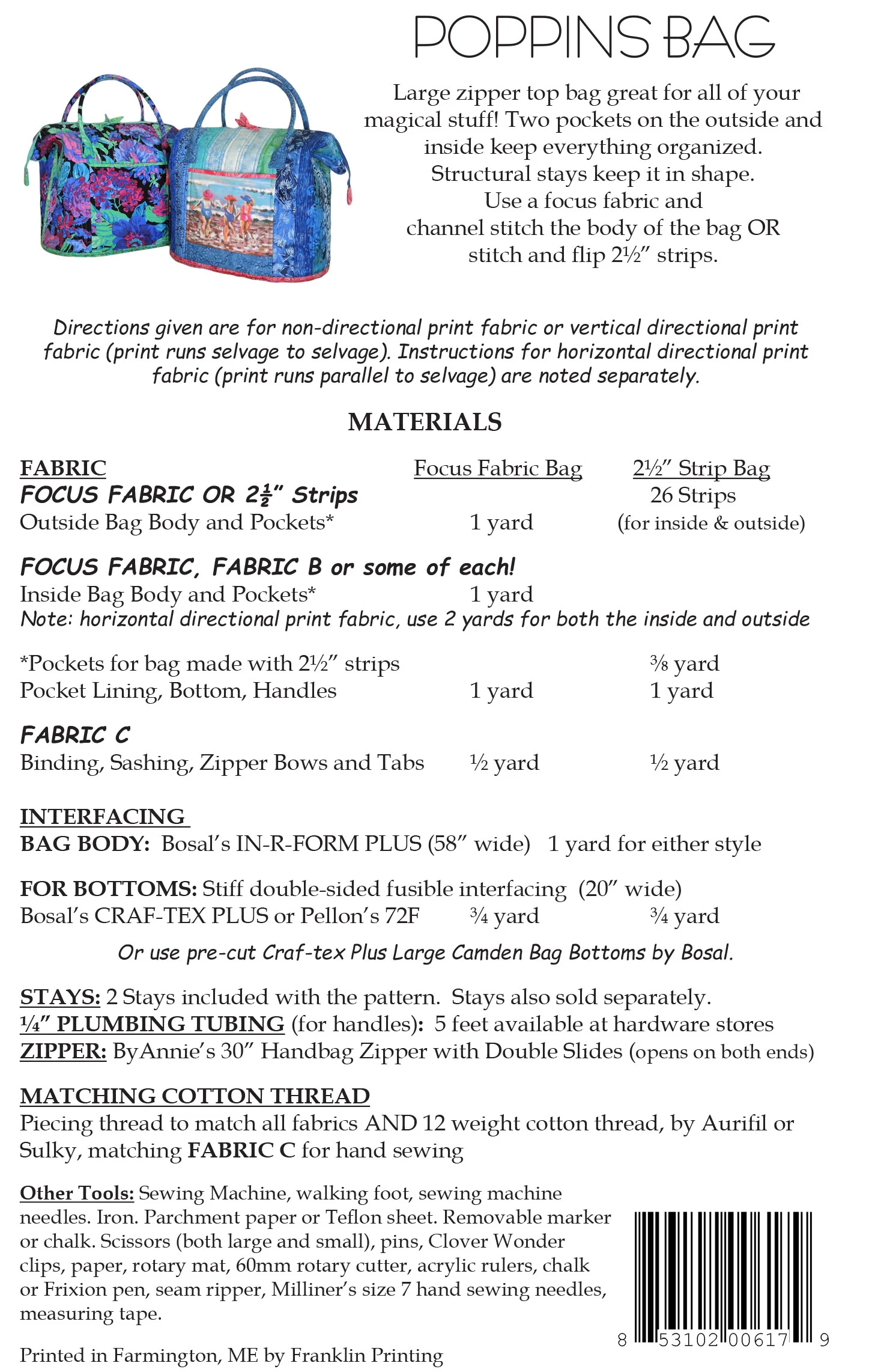 Poppins Bag Pattern by Aunties Two AT617