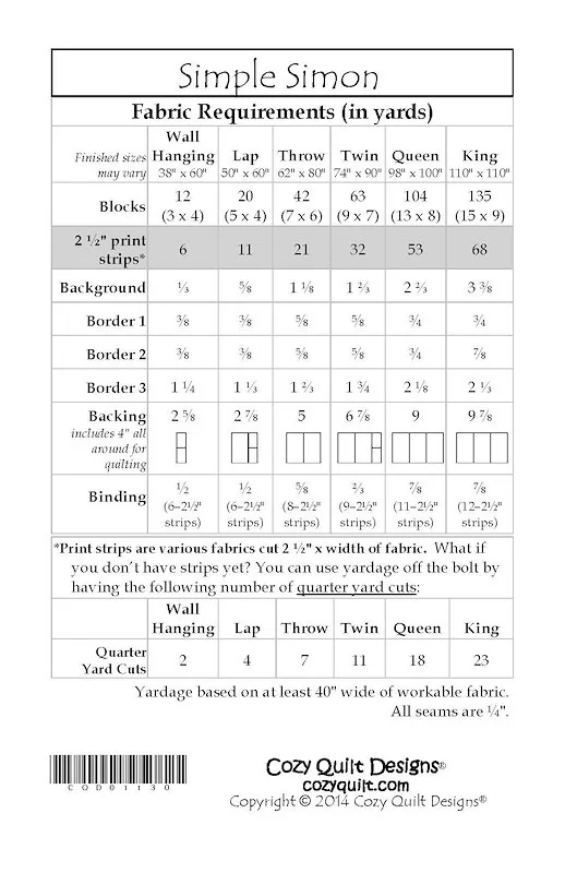 Simon says, make an easy quilt! Simple Simon is a cinch as you twist and turn two blocks from a basic split-rail fence. The result is a pattern that allows you to play--be as scrappy or as modern as you want!