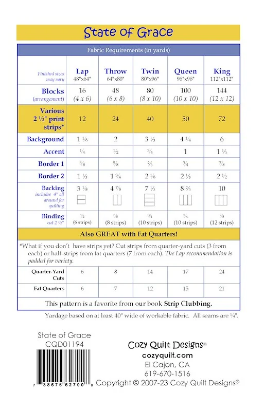 Originally from Strip Clubbing, a book by Daniela Stout, this beautiful quilt, which is an instant favourite, is now full-colour and revised with more sizes! Make one block and rotate it to create a stunning quilt!