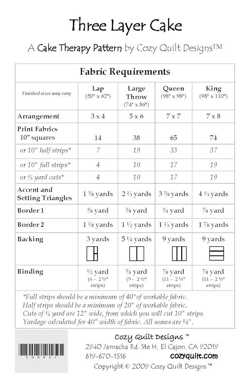 Three Layer Cake Pattern by Cozy Quilt Designs