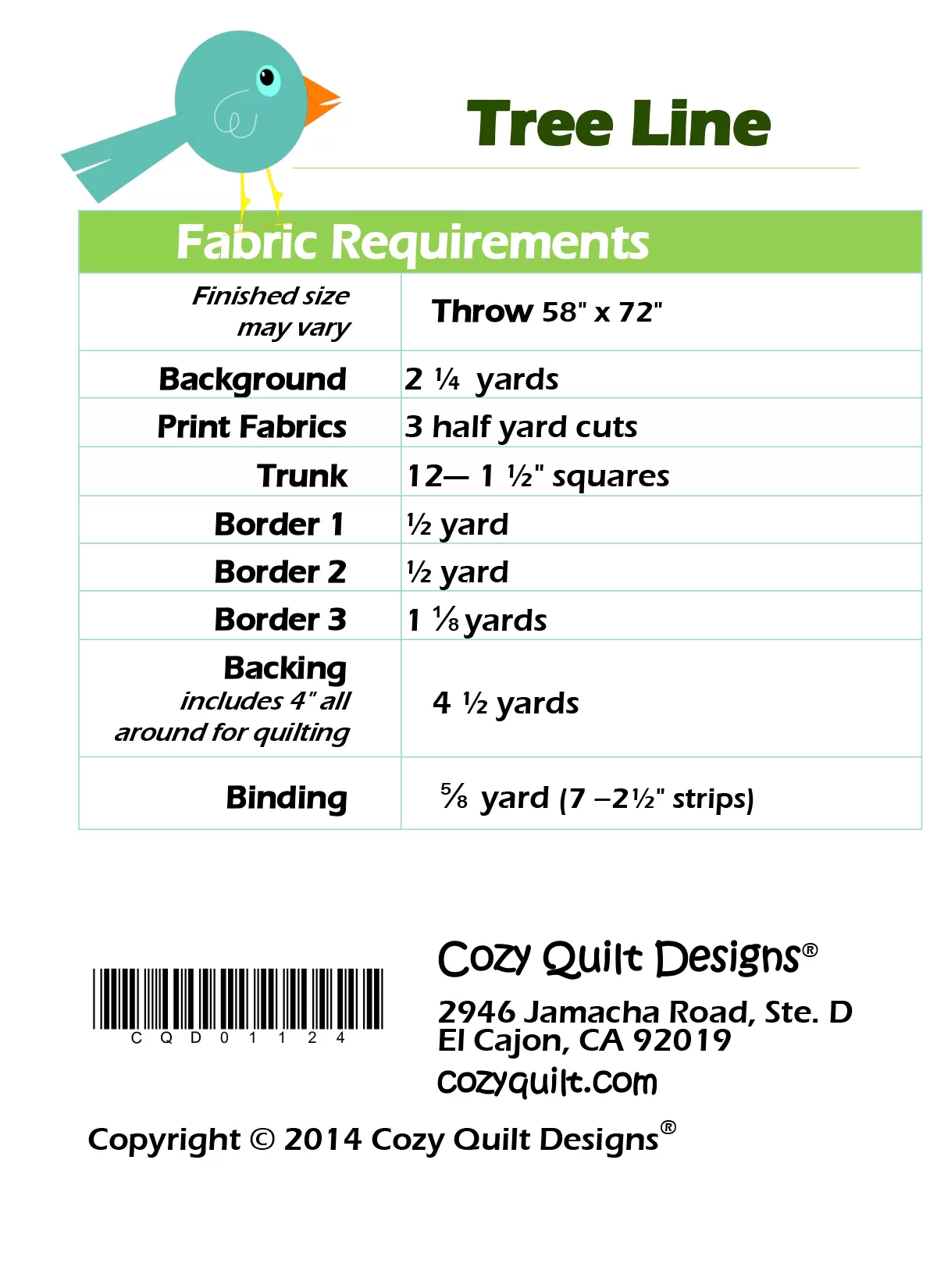 Tree Line is another fresh quilt in Cozy Quilt Design’s latest line of patterns called Sew Chicks! This festive, fun, and fast project starts with your favorite half yard cuts. Then, some creative placement, you create your own little forest of trees!